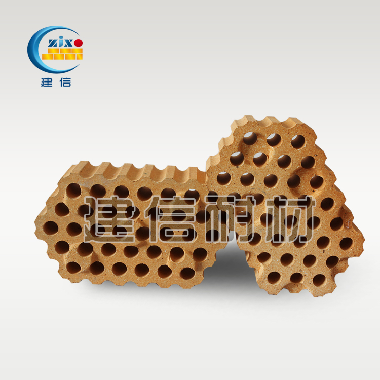 粘土格子磚是以耐火黏土(Al?O? 35%-48%)為主料,添加藍晶石等膨脹劑,經(jīng)高壓成型與1300-1400℃燒結(jié)制成的蓄熱體專用耐火材料。其特點包括: